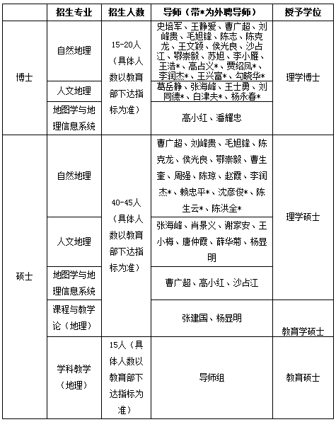 青海师范大学学科教学(地理),实行导师组招生培养,本学科在地理学科教育理论研究,尤其是中学地理教材和中学地理教学研究方面取得了一系列成果,在中学地理教师培训、中学地理教学指导等方面取得了显著成效。近年来,先后主持、参与国家级课题研究项目4项、省级项目3项。在《中国教育学刊》、《高教探索》、《教育理论与实践》、《考试研究》、《学术探索》、《贵州民族研究》等国内外学术刊物发表学术论文30余篇,参编新课标中图版初中《地理》教材、初中地理《教师教学用书》、高中《地理》教材、高中地理《教师教学用书》以及《地理新课程教学论》、《中国地理大百科全书·青海湖卷》、《自然地理读本》等书籍15本,出版专著《教师教材理解论》1部。目前已在中学地理教学研究、中学地理教材研究等研究领域形成了鲜明的研究特色和培养方向。