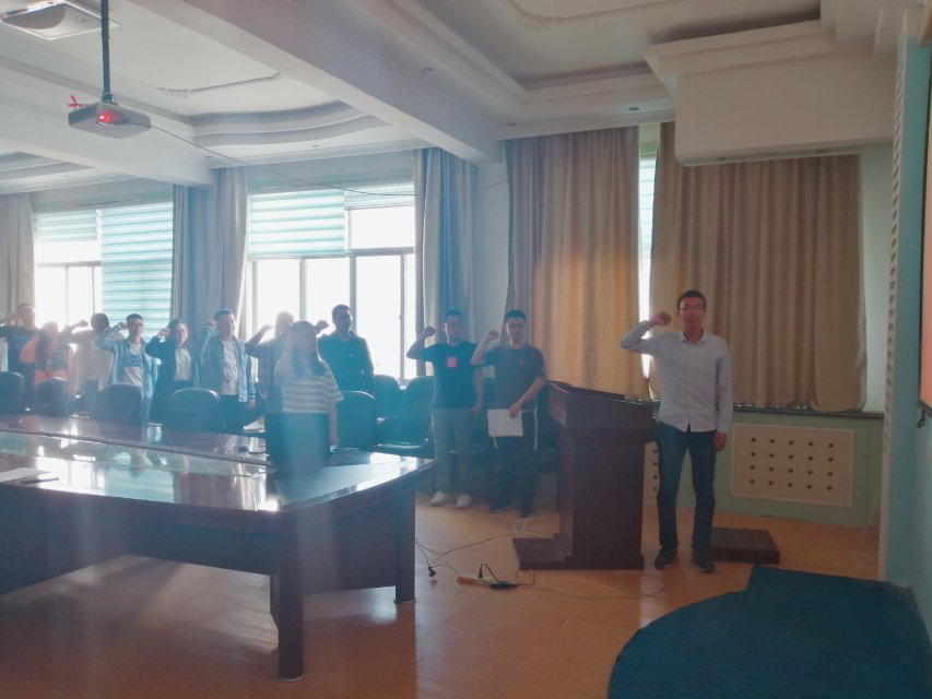 会议最后,由此次接收的预备党员刘飞带领支部全体党员面向党旗庄严宣誓,提醒大家不忘初心,叮嘱自己增强党性观念,积极为党工作,端正思想态度,在日常生活和科研工作中更加充分地发挥模范作用。