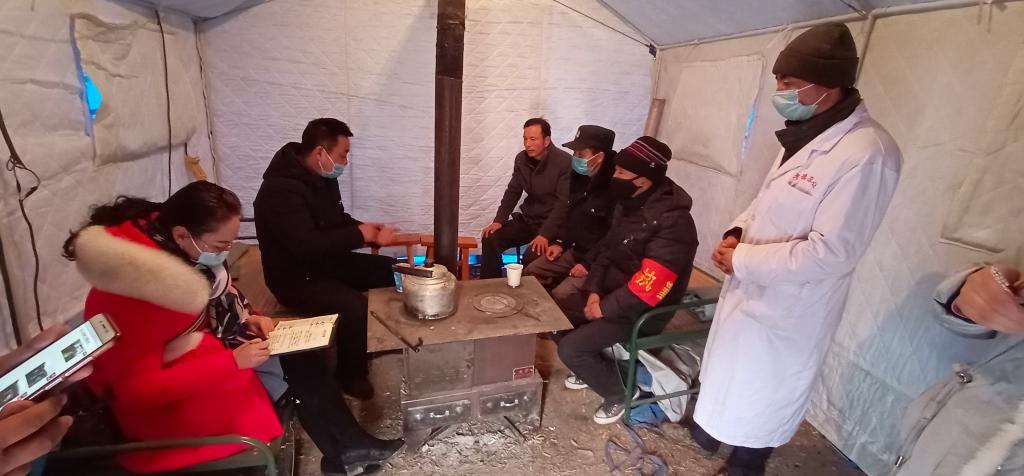 “天下黄河贵德清”,自小生活在青海省贵德县尕让乡亦扎石村的刘汉臣同学眼中总是带着一丝憨厚。在此次疫情中,刘汉臣同学主动参与了疫情防控工作。加入到了该村值班小组队伍中。村中基础条件较差,每天睡觉的地方便是图中的救灾帐篷,但刘汉臣同学没有退缩,在值班过程中,他时而调解矛盾,时而为村民测量体温,时而挨家挨户消毒,时而在冰冷异常且烟熏火燎的帐篷中做着记录……