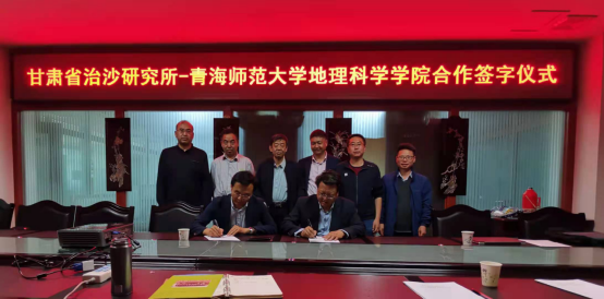 党总支书记兼副院长杨登兴、副院长杨显明、自然地理与资源环境系主任安福元,副主任张进虎,甘肃省治沙研究所所长徐先英、党委书记赵明、民勤治沙综合实验站副站长纪永福及副所长马全林等出席了签约仪式。