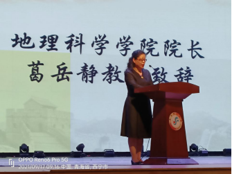 院长李晓华教授分别致辞。葛岳静分别用时间和空间的视角向同学们介绍了什么是青海,什么是青海师大地理人,并鼓励同学们争做“脚下有大地,心中有真理”、有大格局、大担当的时代青年;李强希望同学们可以走出手机,锻炼身体,成就一个强大的体魄,用健康的体魄让时光充满活力;李晓华希望新同学可以尽快适应大学生活,对未来做出合理规划。