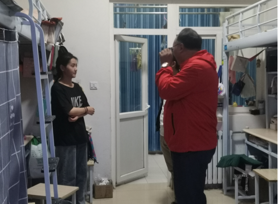 9月21日,09对战平台 党总支书记、副院长杨登兴、党总支副书记洛加才让、副院长杨显明及辅导员深入学生宿舍慰问2021级新生。