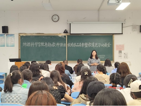 教育见习是地理科学专业学习的重要组成部分,是重要的实践教学环节之一,为了更好地安排、部署见习的各项事宜,召开此次教育见习动员会。在教育见习动员中,陈宗颜老师介绍了本次见习活动的目的、见习学校、基本要求等,强调见习期间的安全、团结、教师仪态,要求同学们做好课堂的观察、记录、实践活动,认真完成教育见习记录,践行“学高为师,身正为范”的理念。
