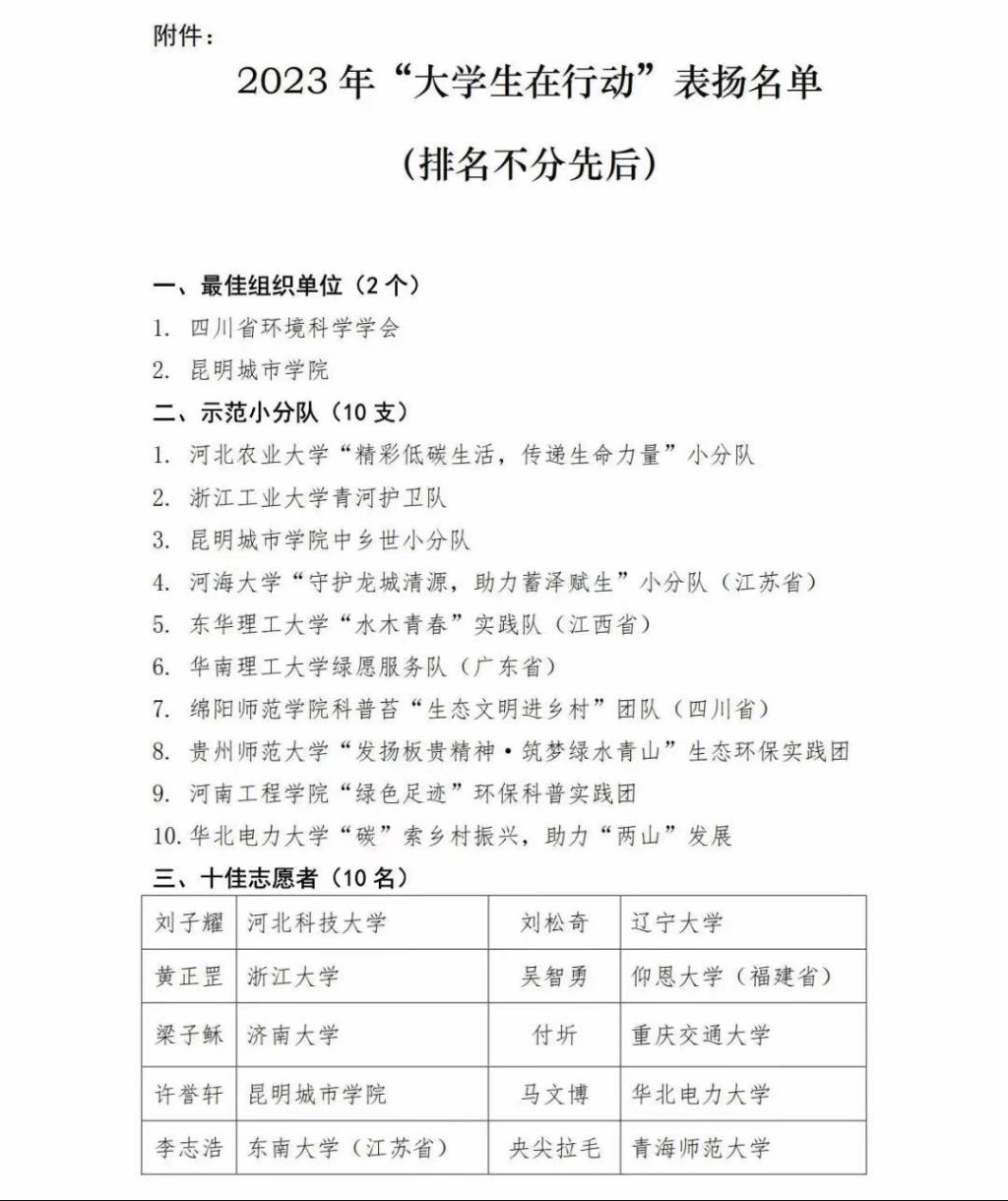 由中国环境科学学会主办的2023年度“大学生在行动”环保科普活动表扬结果揭晓,09对战平台