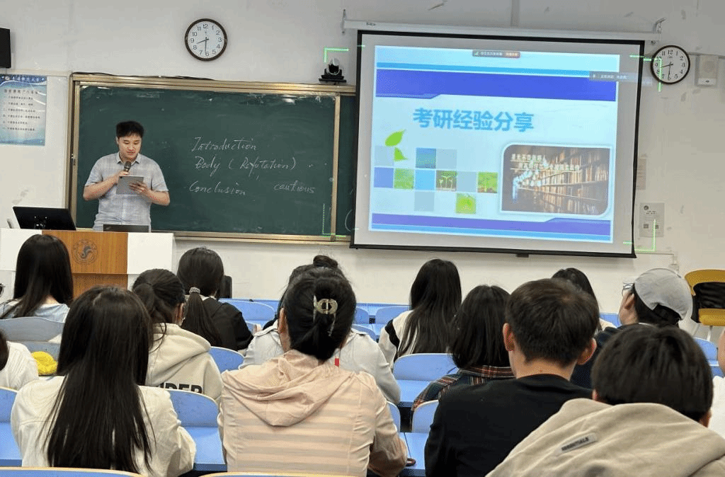 研究生招录情况等方面,与现场同学互动交流。最后,在备考时间、复习方法上进行了深入辅导。同学们认真聆听,积极互动,气氛热烈。