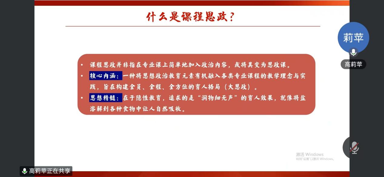 高莉苹副教授担任主讲嘉宾,围绕课程思政建设的核心命题展开深度分享。