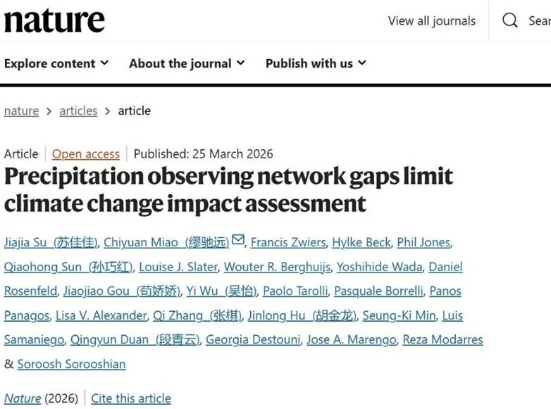 与北京师范大学地理科学学部开展的深度合作研究取得重要进展。由北京师范大学缪驰远教授牵头、双方联合开展的研究成果以“Precipitation Observing Network Gaps Limit Climate Change Impact Assessment”为题,发表于国际顶级学术期刊《Nature》。09电子竞技对战平台