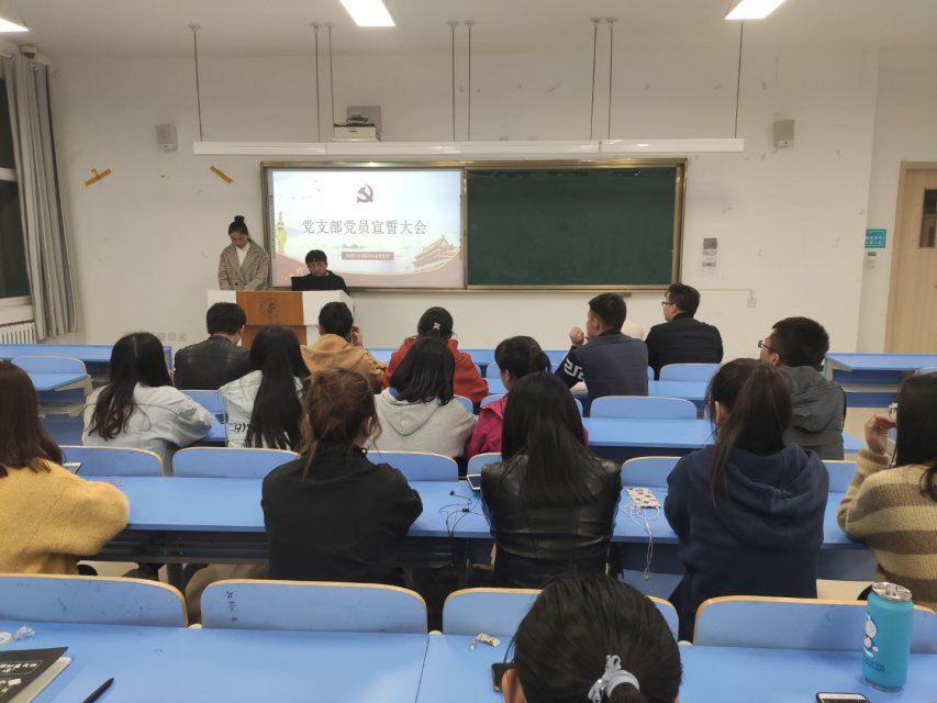 本科生党支部于10月13日在西四楼430教室举办了党员宣誓大会,参会人员有教工党支部书记吕晨青老师,辅导员杨永潇老师,部分学生党员以及09对战平台