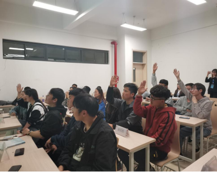 第三部分为判断题,将以抢答的方式进行,参赛队员们举手抢答,从神情中表露出的信心十足,为本次活动增添了别样的风采。通过抢答环节,以得分高低的顺序确定最后简答题的答题顺序。在整个活动中参赛队员的团结一致,齐心协力,在紧张激烈角逐中,我们更是看到了参赛队员的不放弃以及对于队友的信任。最后由社团负责人为成绩优秀的团队进行颁发奖品。